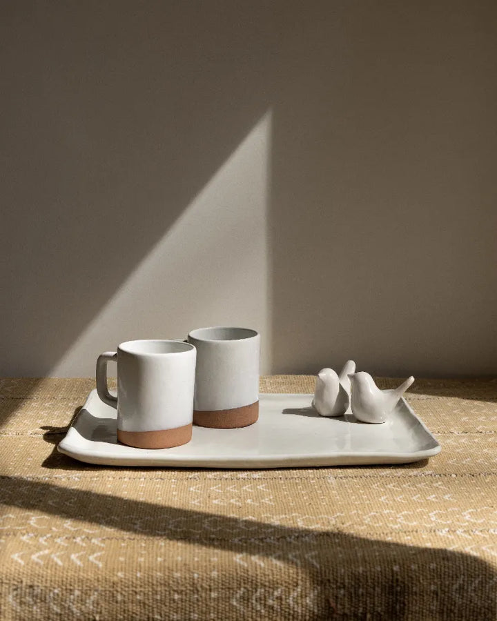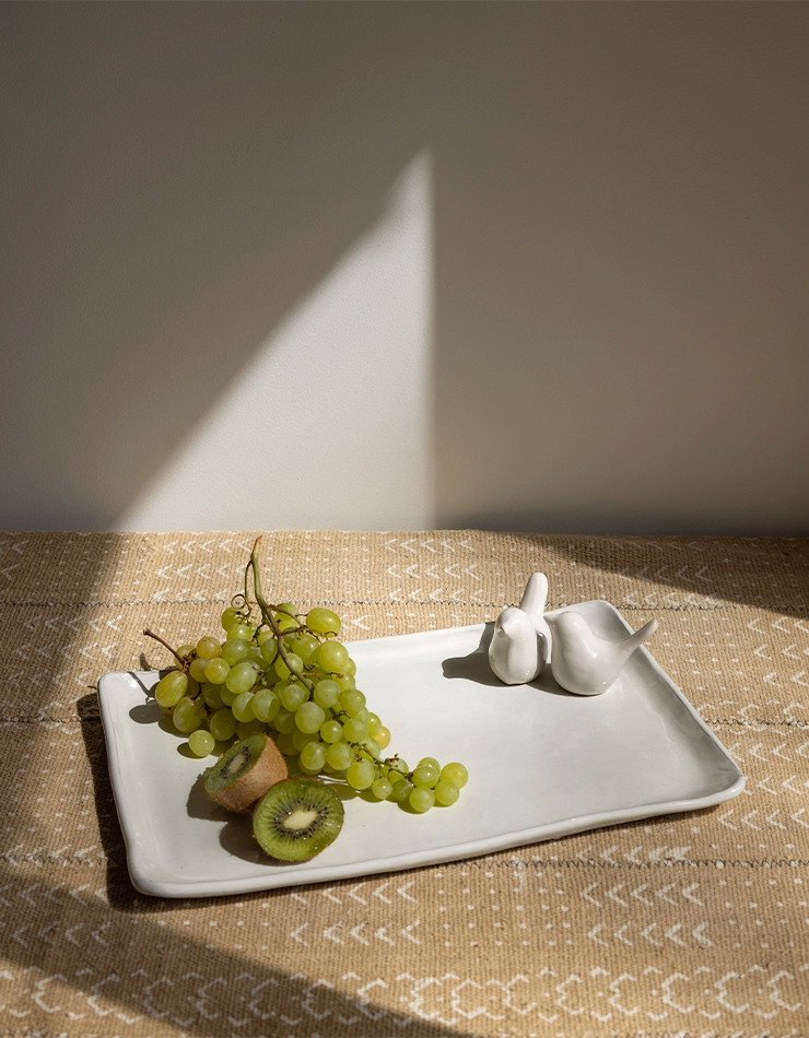 Art meets function in this 25x40 cm pottery tray, adorned with hand-painted birds.