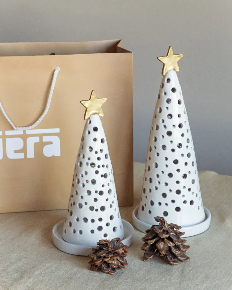 Pottery Christmas Trees. Holiday magic, sculpted in white. Two sizes to brighten your seasonal decor.🔸 Handmade Pottery🔸 Sizes: 30 cm & 36 cm🔸 Winter Minimalism Your ceramic forest begins here.