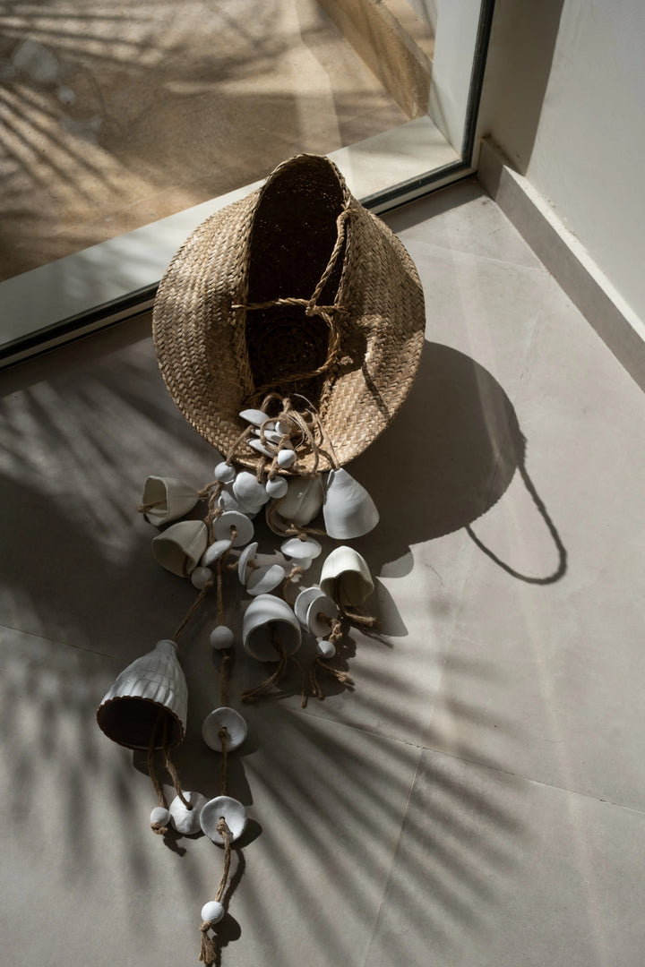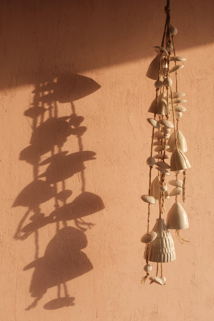 Add a warm, artisanal charm to your space with our handcrafted pottery hanging bells. Designed to hang beautifully from the ceiling, each bell is shaped from natural clay and finished with a smooth, earthy glaze. With a height of 100 cm, this piece adds a gentle vertical accent.