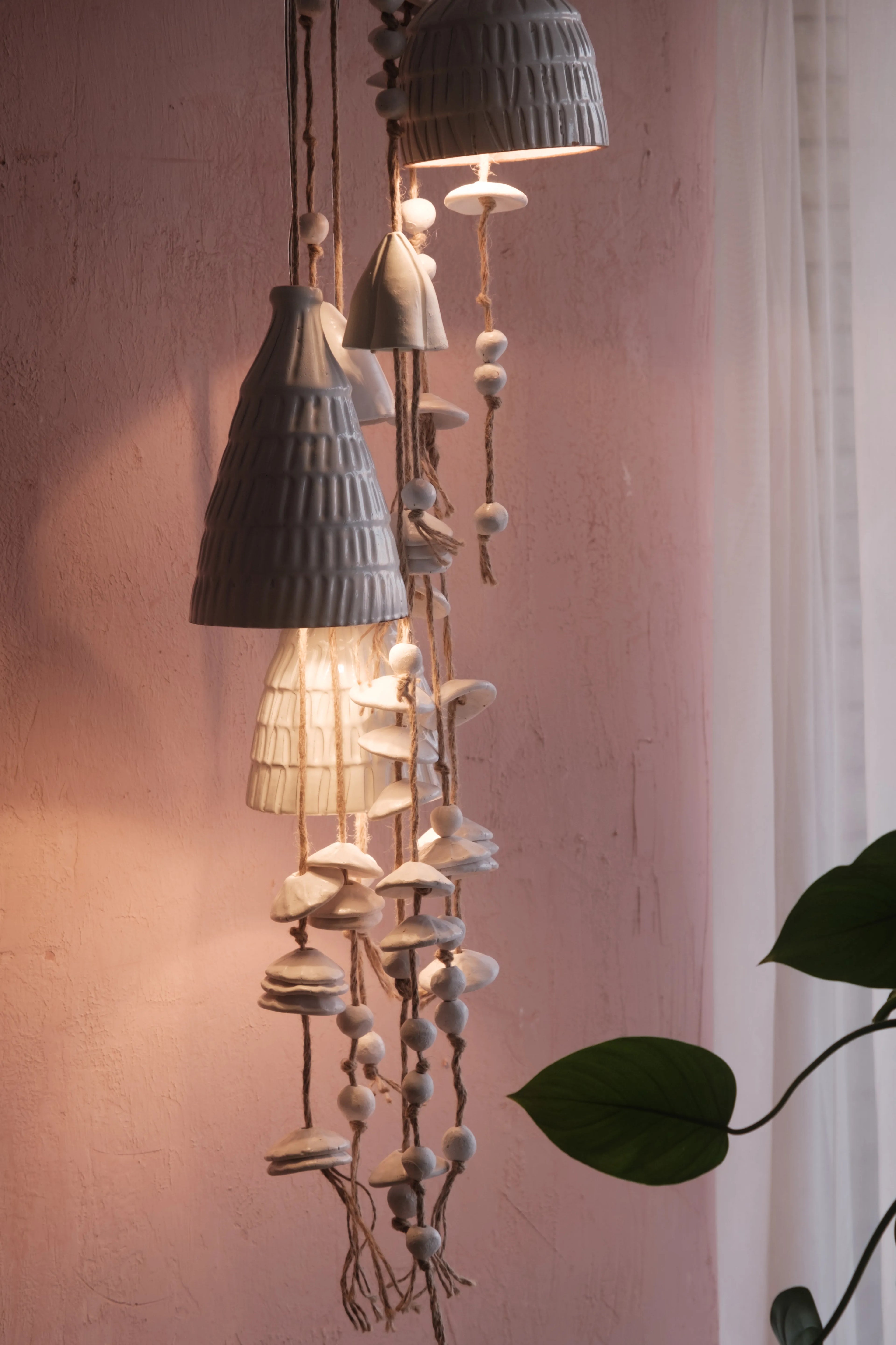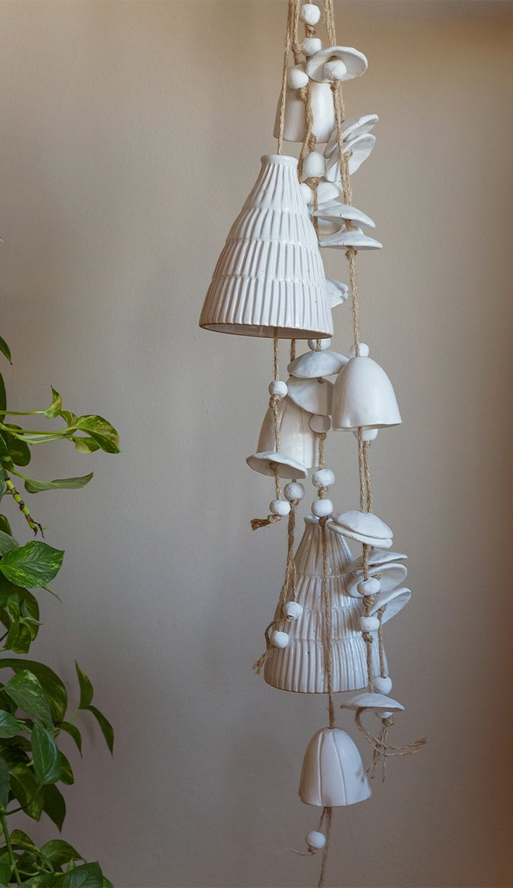 Handcrafted Pottery Hanging Bells with Light