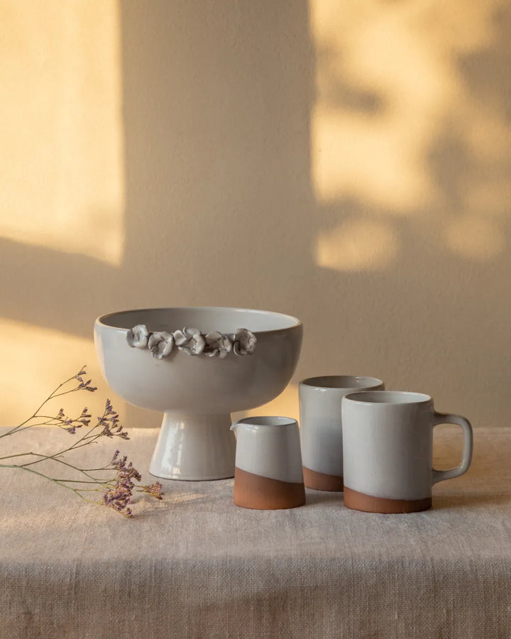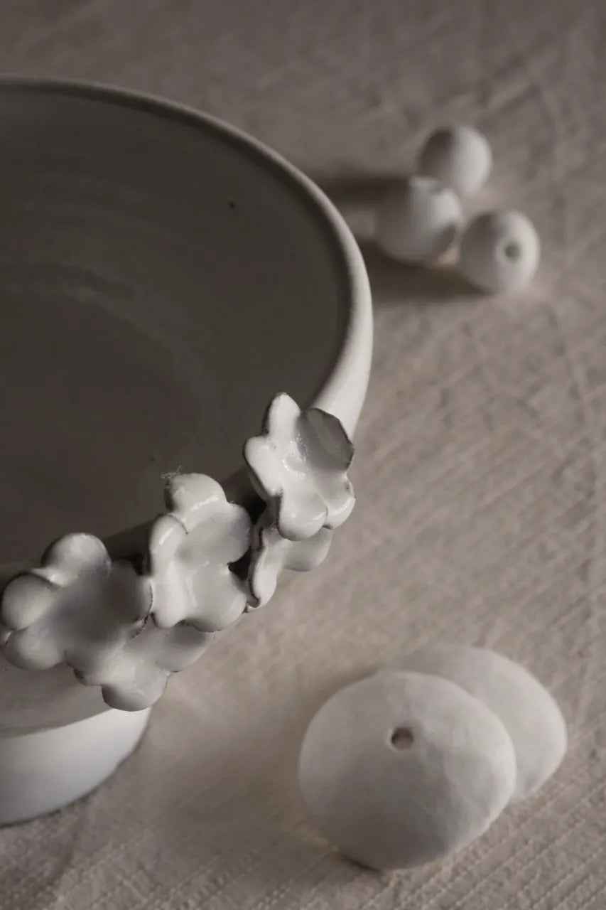 is a handcrafted white pottery bowl with a soft, rounded form. With a diameter of 18–20 cm, it’s perfect for serving, holding fruit, or simply living beautifully on display. Rooted in simplicity, it brings a grounded charm to your kitchen or dining area. 🔸 Handcrafted White Pottery 🔸 Diameter: 18–20 cm 🔸 Ideal for Everyday Serving 🔸 Organic, Rounded Shape. A simple memory of home—shaped in timeless ceramic.